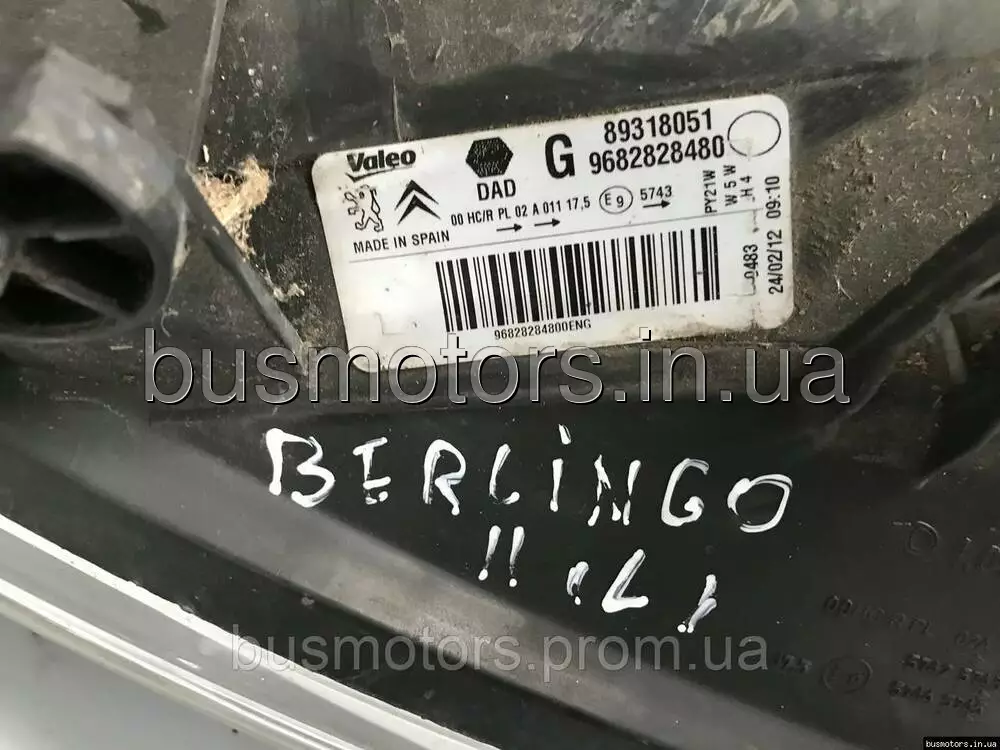 Фара передняя левая Peugeot Partner B9 2008 - ... 9682828480