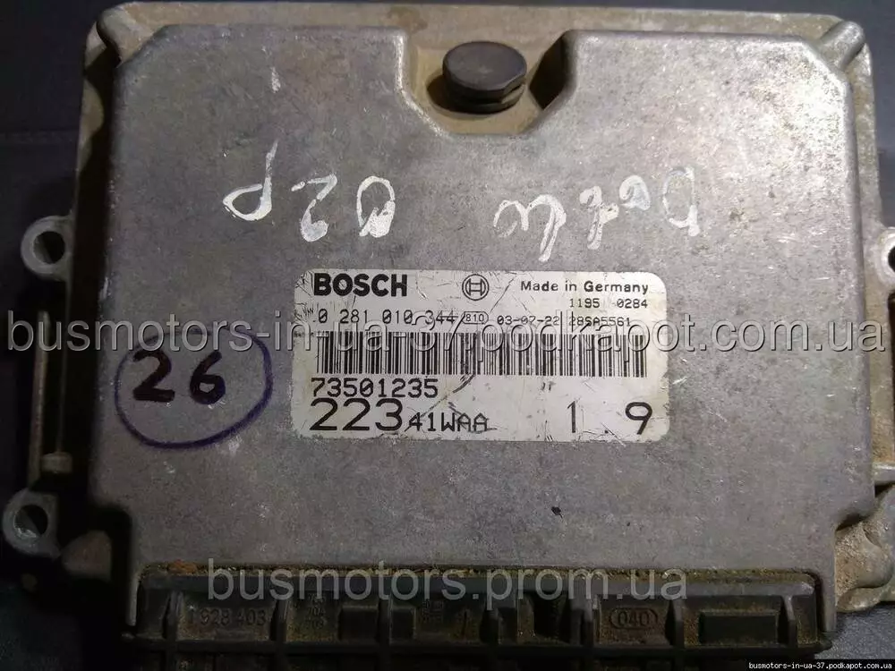 Блок управління двигуном (ЕБУ) комп'ютер Fiat Doblo 1.9 Mjtd (2000-2005) - 73501235 , 0281010344