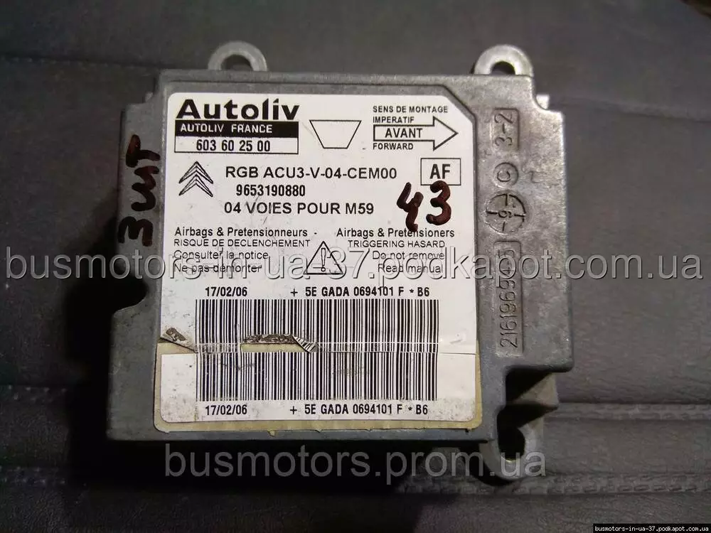 Блок управління подушками безпеки (ЕБУ AIRBAG) Citroen Berlingo M49 (1996-2003) - 9653190880 , 603602500