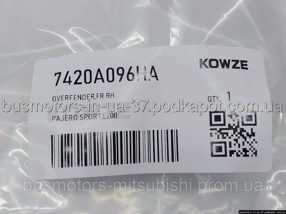 Накладка арки переднего крыла правая Mitsubishi Mitsubishi Pajero Sport 2008-2015 7420A096HA